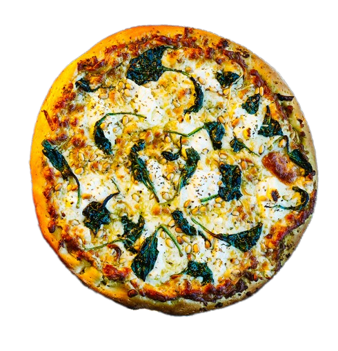 Sesame crust, Thai sauce, mozzarella, mushroom, chicken breast, green onions, bell peppers, almonds & Parmesan.