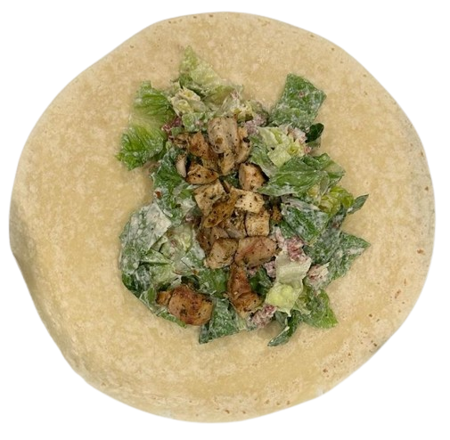 Grilled chicken tossed with Caesar salad. cheese Grilled On 12″ Tortilla