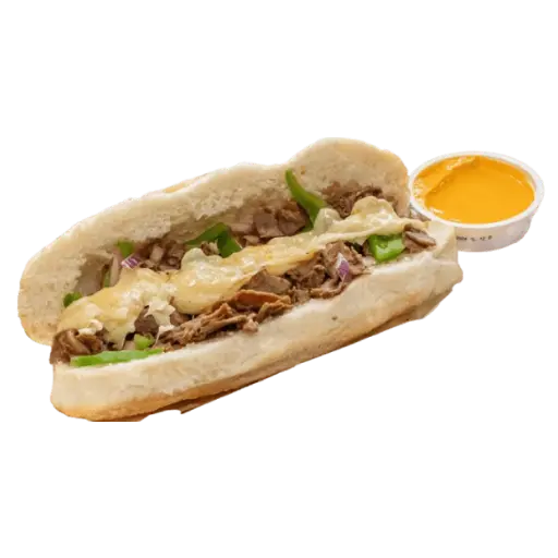 Garlic butter, onions, green peppers, steal, mozzarella cheese. Comes with cheddar Chipotle on side.